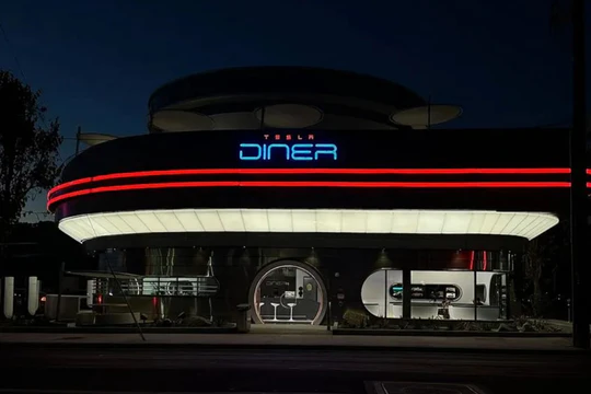 В Лос-Анджелесе начал работу первый ресторан Tesla в стиле 50-х годов. В заведении можно перекусить, подзарядить электромобиль и даже пообщаться с роботом.